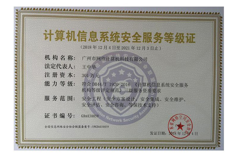 計算機(jī)信息系統(tǒng)安全服務(wù)等級證
